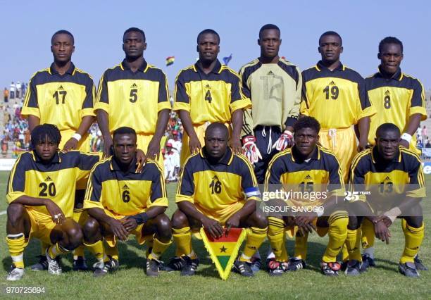 Les "Black Star" du Ghana posent pour les photographes le 21 janvier 2002 au stade Amary Daou de Segou au Mali. (Debout de G à D) Baffour Gyan, John Mensah, S. Sammuel Osei Kuffour, James Nanor, Kofi Amponsah, et Michael Essien. (Premier rang de G à D) Abdul Razk Ibrahim, Amankwah Mireku, Emmanuel Duah, Princeton Owusu Ansah et Isaac Boakye. AFP PHOTO ISSOUF SANOGO (Photo by Issouf SANOGO / AFP) (Photo credit should read ISSOUF SANOGO/AFP via Getty Images)