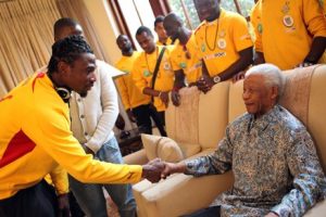 On this day, 3 July 2010 #NelsonMandela met the Black Stars of Ghana, the only African team to make it to the quarter finals of the FIFA World Cup 2010.