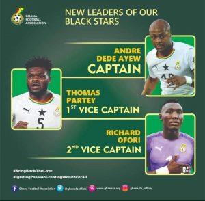 “The trio will lead the team as the Black Stars go through the remaining Africa Cup of Nation qualifiers as well as the qualifying games for the 2022 FIFA World Cup in Qatar and subsequent tournaments.”