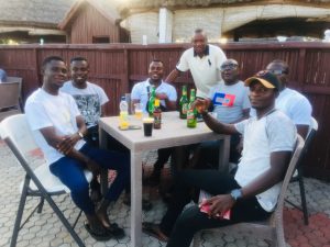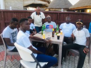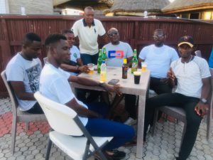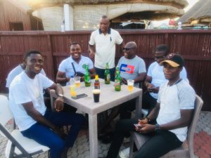 The Sports Crew of Nzema based radio station, West End Radio 100.3 had an emotional farewell to ex Nzema Kotoko head coachHenry Wellington, in grand style ceremony immediately after his final interview on Sunday afternoon at the Trip Bar and Restaurant inside Aya Community and Recreational Centre.