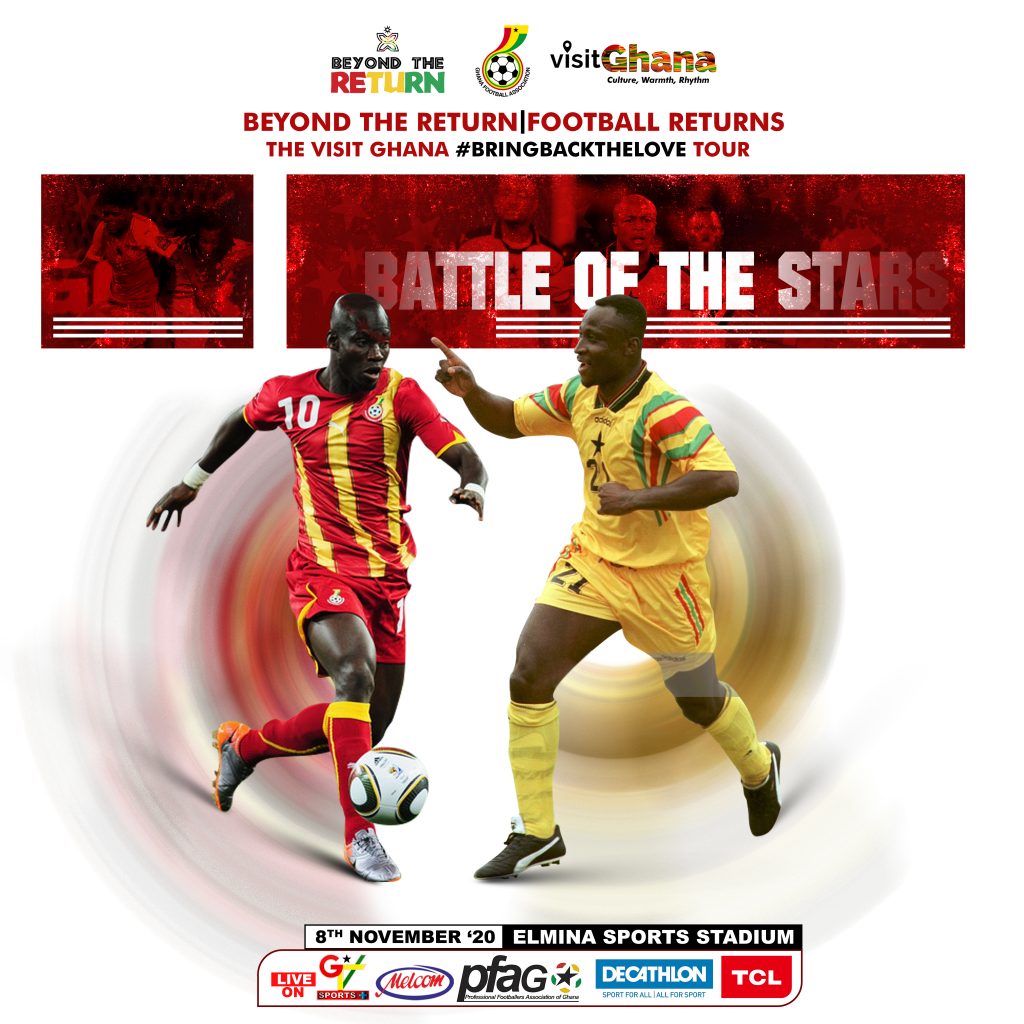 The ‘Battle of the Stars’ game is one of the grand schemes under ‘The Visit Ghana, #Bringbackthelove football tour’, an initiative of the Ghana Tourism Authority (GTA), the GFA and the Professional Footballers Association of Ghana (PFAG), with support from GTV Sports+, that seek to promote domestic and international tourism through football.
