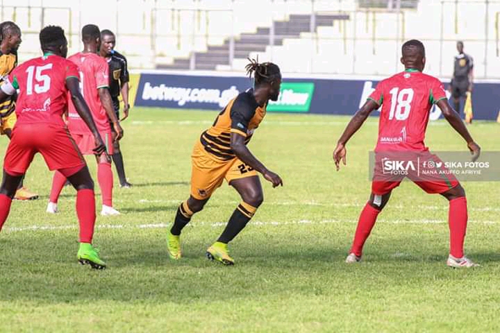Hans Kwofie scored the second goal for Ashgold in the 44th minute from a well connected cross from ex-Hearts of Oak left-back Abdul Bashiru.
