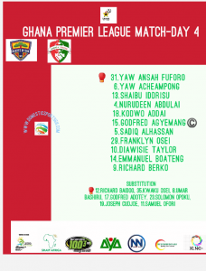 Karela United names Centre-back, Nurudeen Abdulai in starting line-up to face Hearts of Oak.