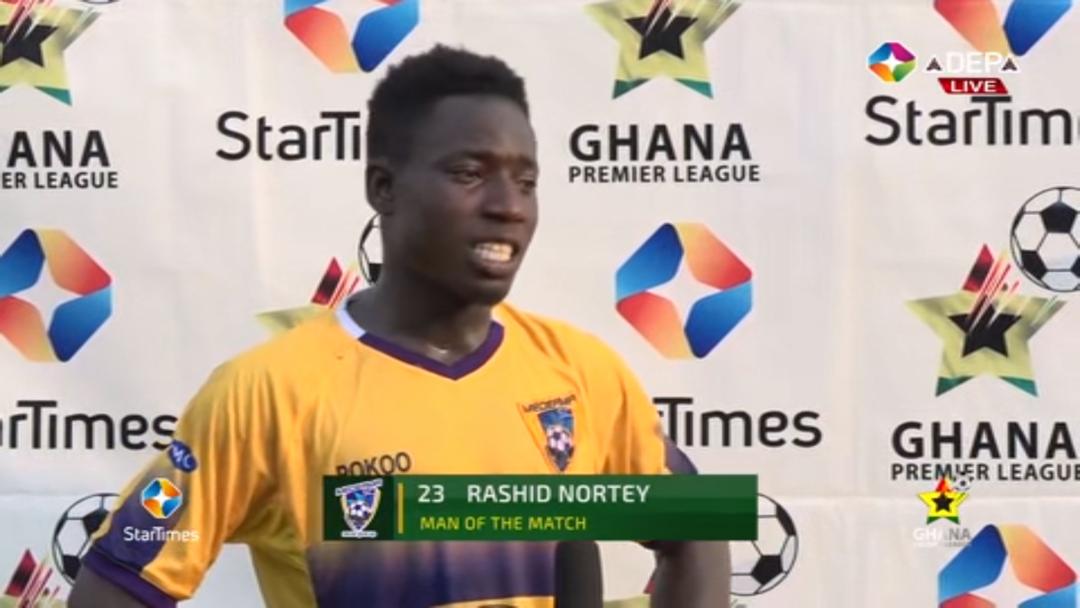 Medeama midfield gem Rashid Nortey clinched the Man of the Match award in his side’s 1-1 draw at home with Asante Kotoko on Sunday in the Week IV outstanding fixture.