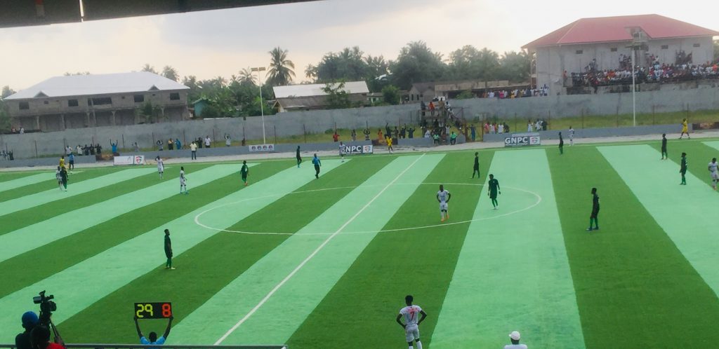 Elmina Sharks took the lead through experience midfielder James Bissue, after driving in a ferocious strike from a free-kick in the 15th minute.