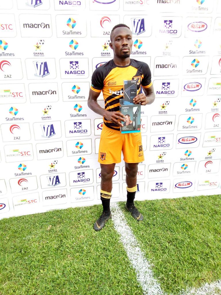 AshantiGold player David Abagna has been named Man-of-the-match award following his excellent display in his team 4-0 win over Aduana Stars.