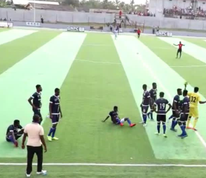 The Centre referee Abdul Latif Kadir awarded a penalty against Karela United But later changed the decision after a series of consultations between him and assistant line 1 Richard Appiah.