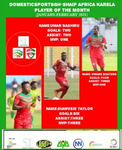 Three Karela United players have been shortlisted for the Domesticsportgh-Shaip Africa player of the month for February.
