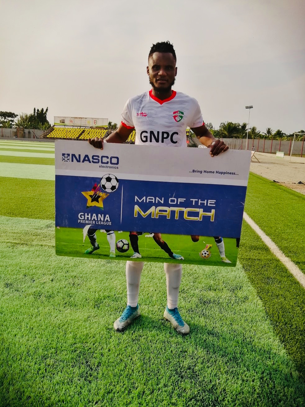 Sadiq Alhassan wins Nasco ‘Man of the Match’ award in Karela’s win against Aduana Stars