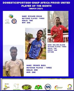 The Organizers of the Domesticsportsgh-Shaip Africa Monthly Awards for Nzema-based Clubs, Domesticsportgh has released three nominees for the Proud United player of the month for March.