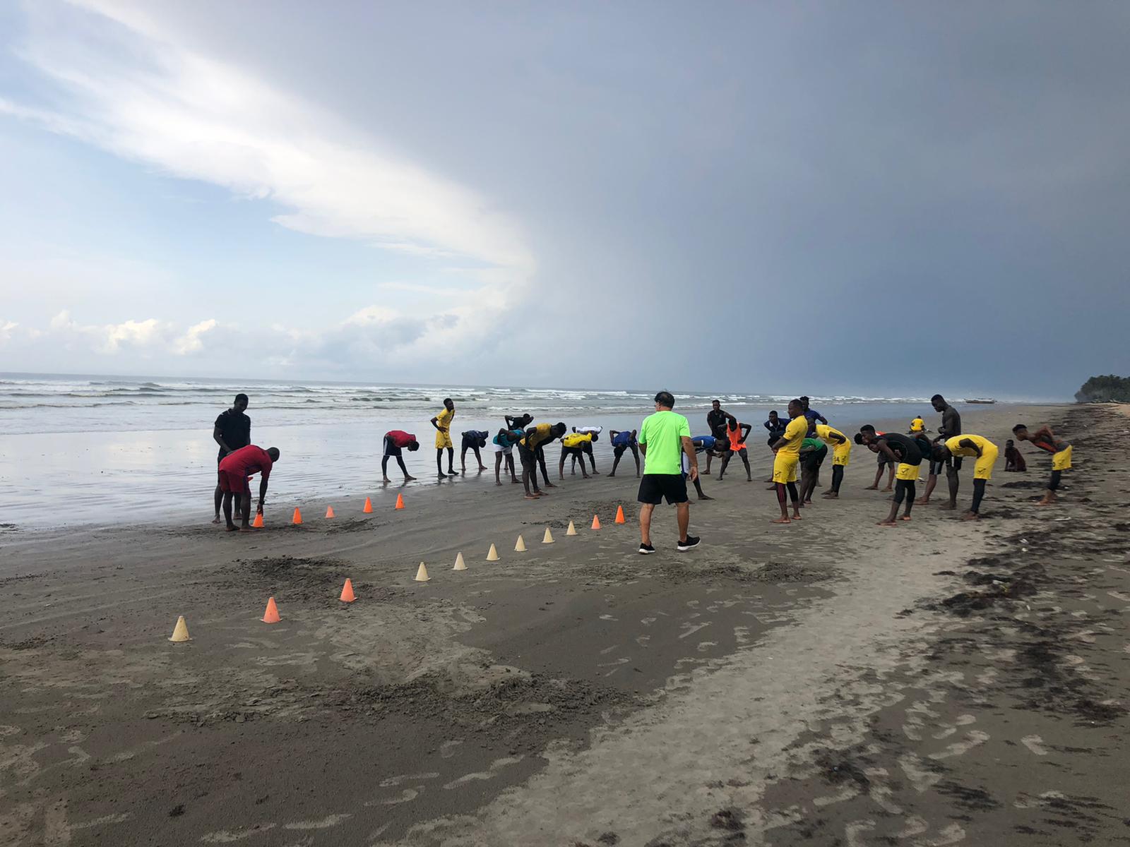 The Jomoro-based club were engaged in light training at the Enzilibo beach to sharpen the rough edges after 8 days of football inactivity.