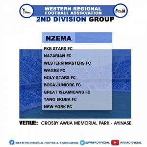 The Western Regional Football Association has announced that, the Nzema Zone of the Regional Division Two League will kick off this week 11th June, 2021, at the Crosby Awuah Memorial Park, the home of the Premier League side Karela United.