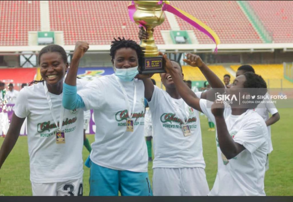 Hasaacas Ladies became the first female side to win two trophies in a single season in the history if Ghana football following a 2-0 win over Ampem Darkoa ladies in the finals of MTN FA Cup on Saturday.