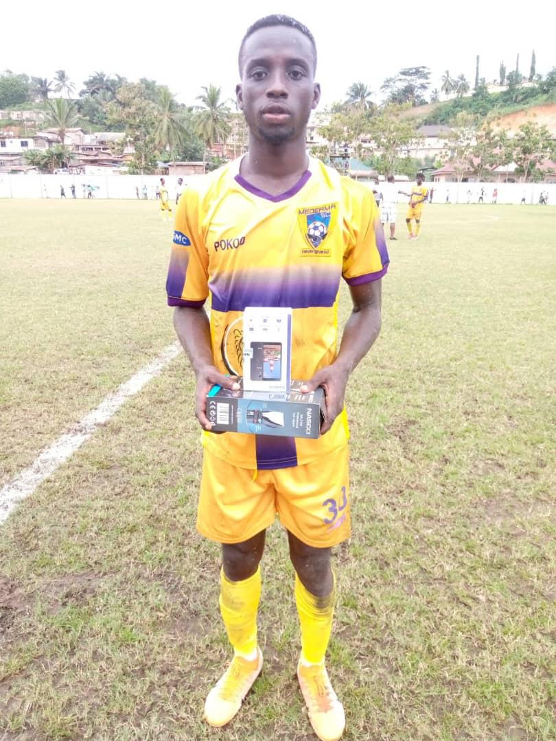 Medeama SC winger Ebenezer Ackahbi was adjudged the man of the match when they won 3-2 against Elmina Sharks in the ongoing campaign on Sunday afternoon.