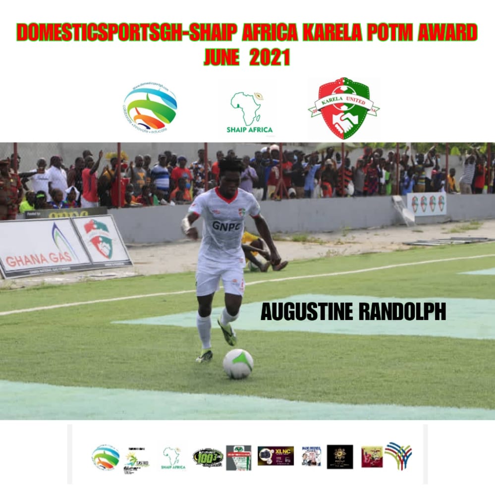 Augustine Randolf has been voted Karela United’s Player of the Month winner for May-June 2021, an award organized by Domesticsportgh and proudly sponsored by Shaip Africa Foundation.