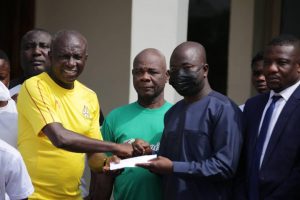 The former Ghana Football Association Communication member, Tamimu Issah who was sent by the Vice President, presented the amount to Hasaacas Ladies which was well received by Coach Yusif Basigi.