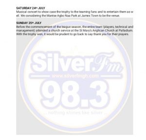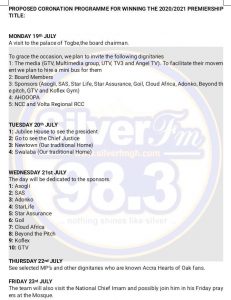 Hearts of Oak’s “proposed” program outline for their league victory celebration released