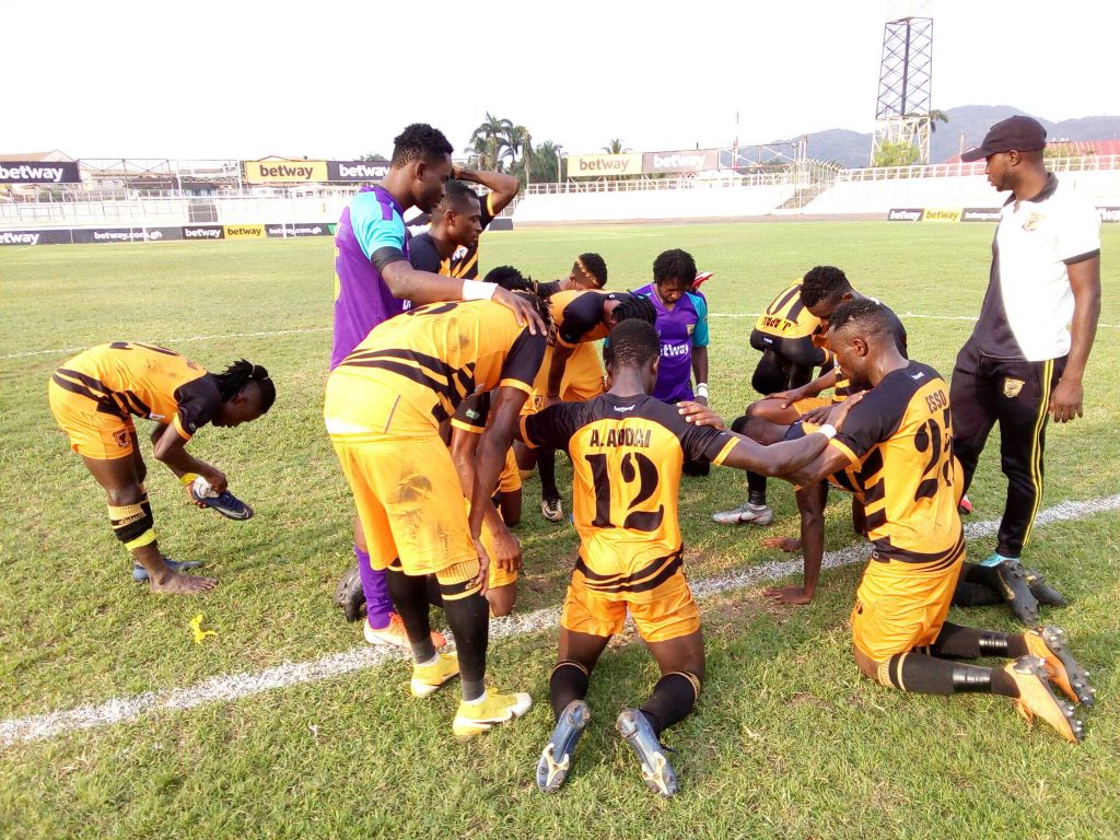 In a game played at the Cape Coast Stadium, Eric Esso scored from a direct free-kick in added time of the first half to shoot the Miners into the lead.