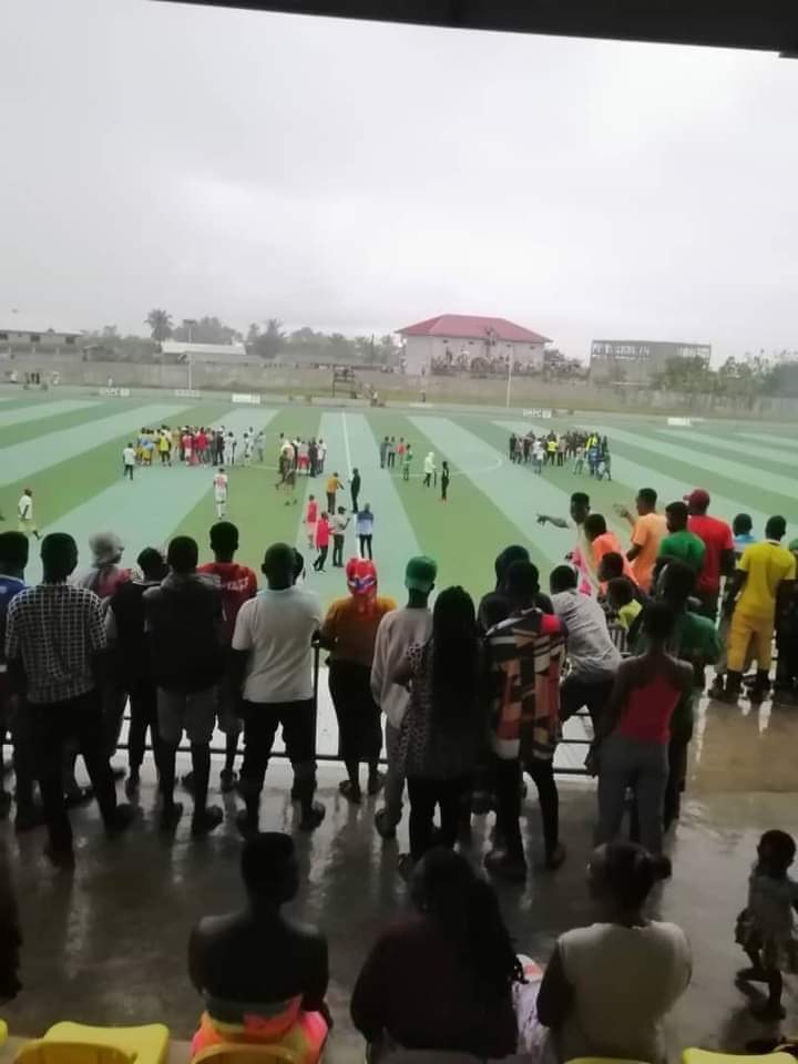Midfielder Eric Kwakwa picked up an injury after half-time as stone was thrown at him in the process.