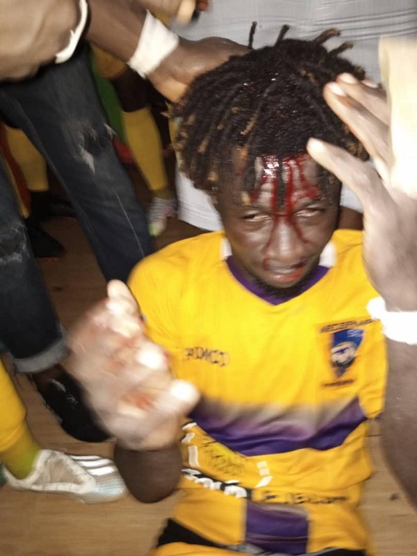 Midfielder Eric Kwakwa picked up an injury after half-time as stone was thrown at him in the process.