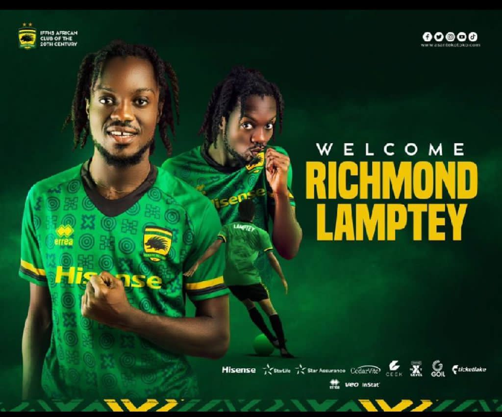 Ghanaian midfielder Richmond Lamptey has completed his move to Kumasi Asante Kotoko, the club has announced.