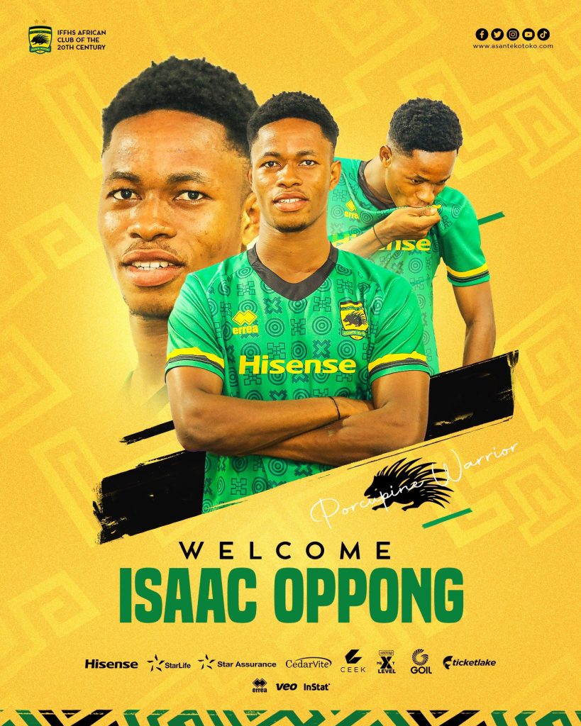 Ghana Premier league side, Asante Kotoko have completed the signing of young goal poacher Isaac Oppong, the club has announced.