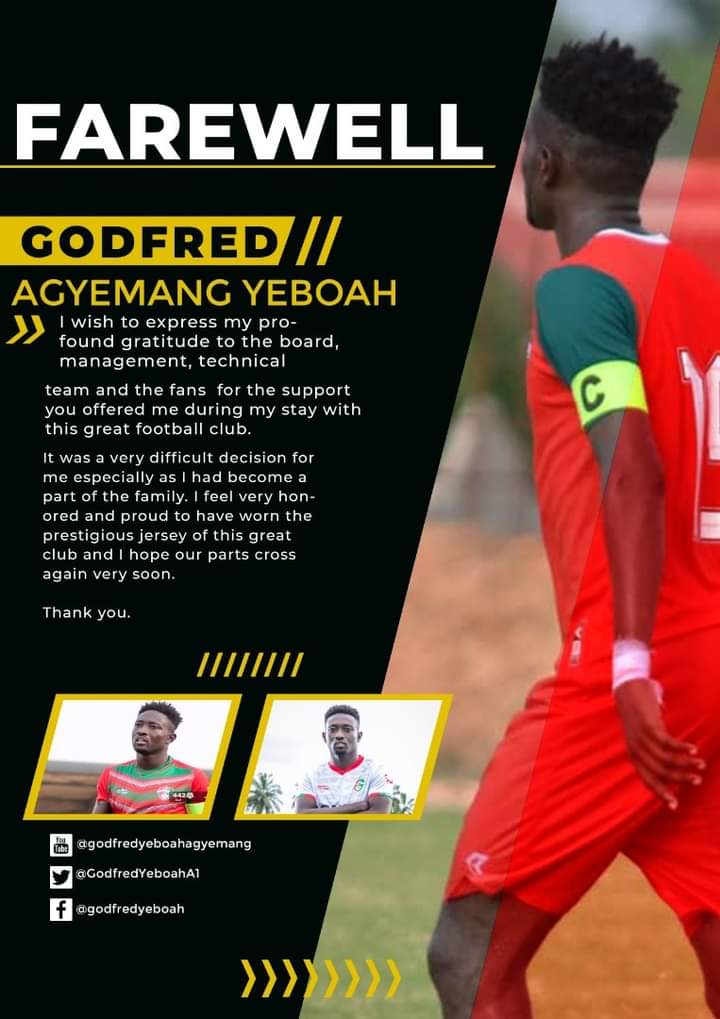 Karela United skipper, Godfred Agyemang Yeboah has confirmed his departure from the club after mutually abrogating his contract with the club.