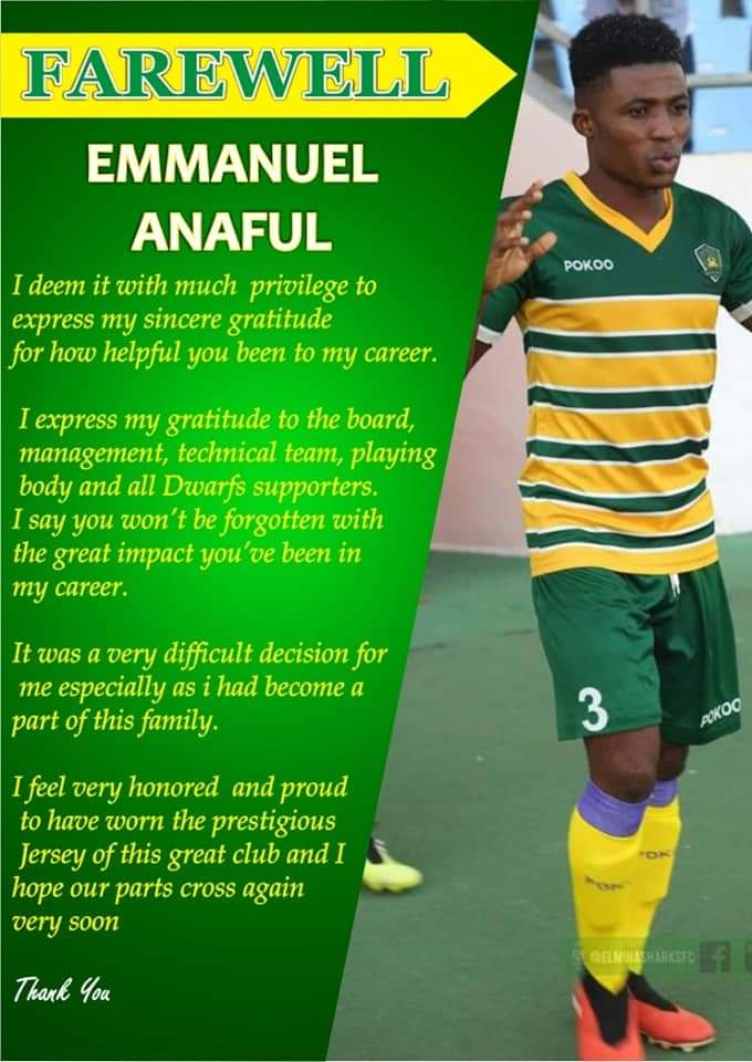 Emmanuel Anaful has penned an emotional farewell message to his former club Ebusua Dwarfs after he completed his move to Karela United.