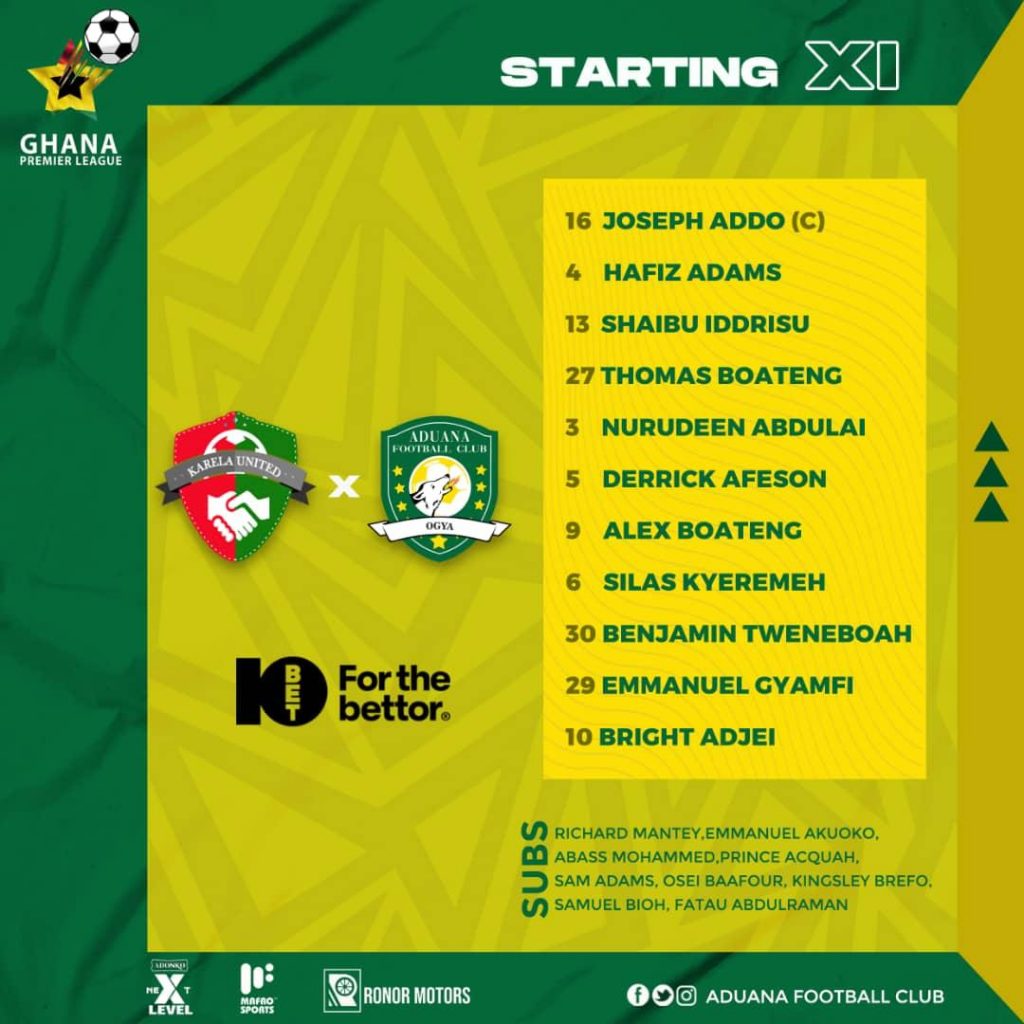 Aduana Stars head coach Joseph Asare Bediako has announced his starting line-up for their Ghana Premier League match-day 1 showdown against Karela United at the Crosby Awuah Memorial Park.