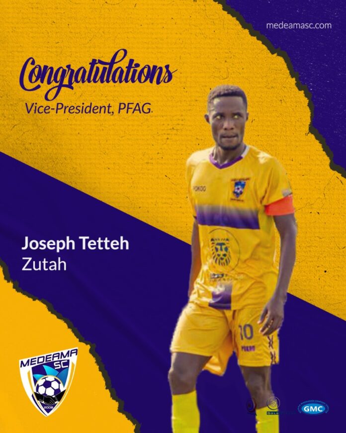 Medeama captain Joseph Tetteh Zutah has been elected as the new Vice- President of the Professional Footballers Association of Ghana (PFAG), the umbrella body of players in Ghana and Ghanaian footballers abroad, the association has announced.