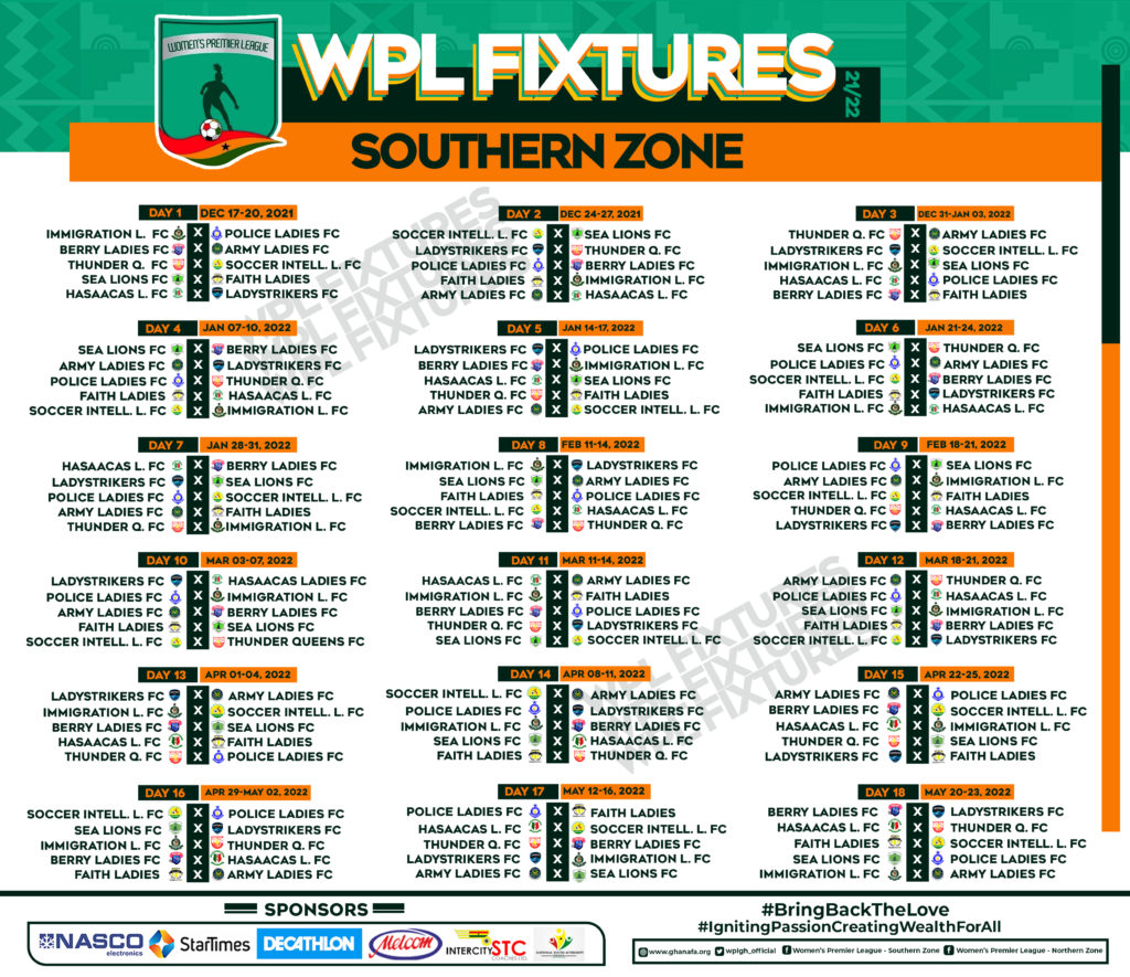 The Ghana Football is pleased to release the fixtures of the 2021/22 Women’s Premier League season.