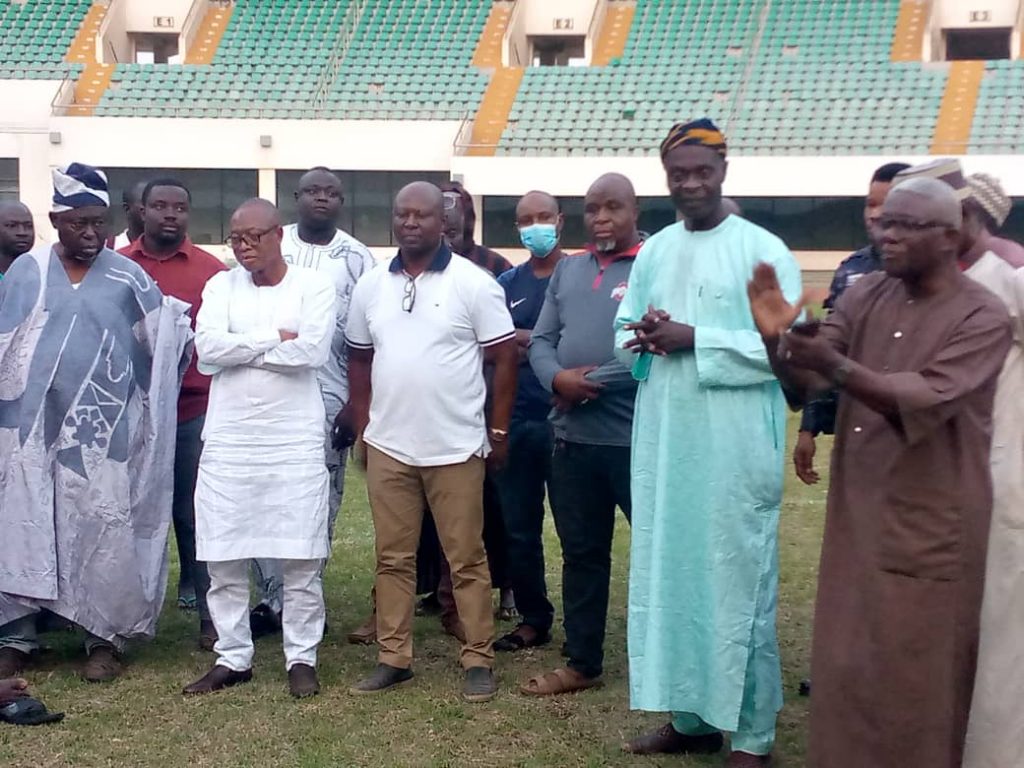 “Patron of Real Tamale United and the Northern Regional Minister, interact with playing body ahead of Medeama SC match on Sunday.”