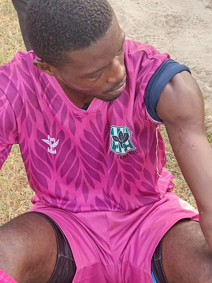 During the game, a penalty was awarded to the away team, Samatex and that made the home fans run at players of Samatex, got their goalkeeper George Arthur beaten and injured.