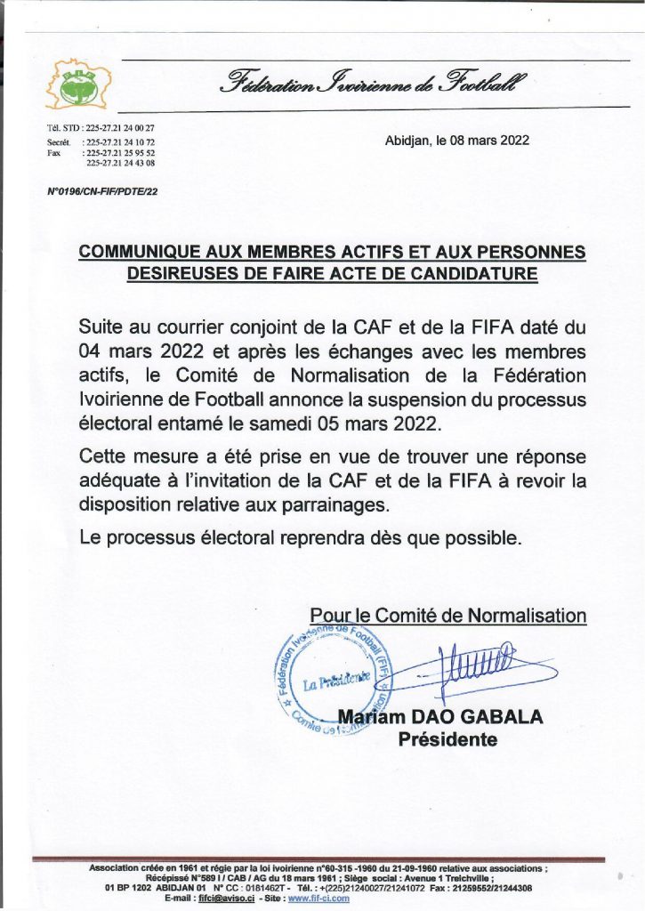 Elections to appoint a new president of Ivory Coast’s football federation (FIF) have been postponed once again.