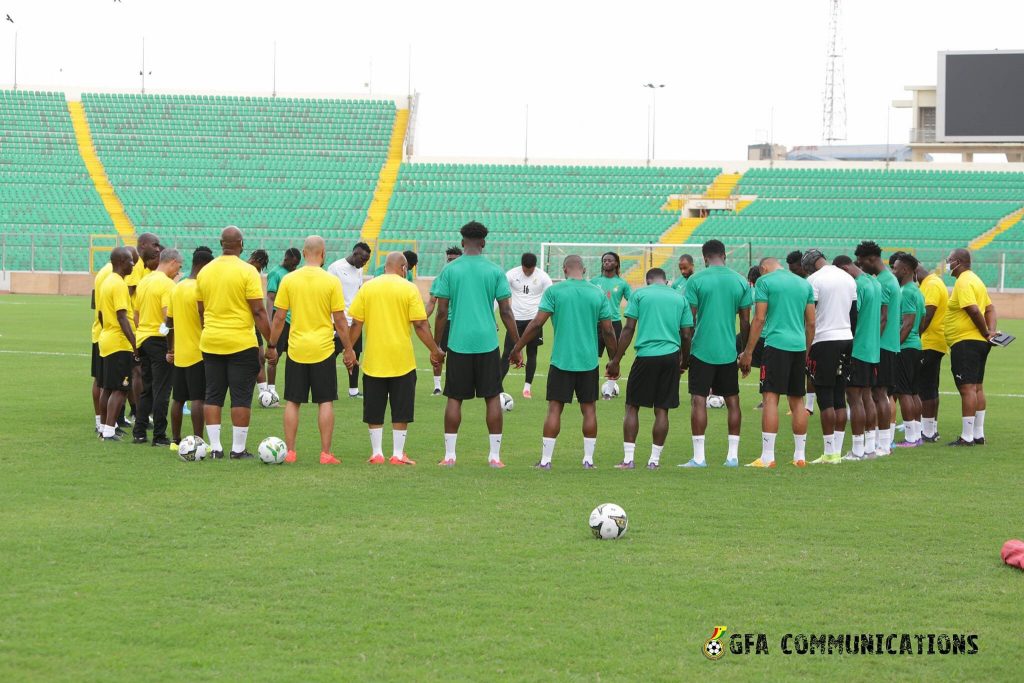 The Black Stars of Ghana held their first training session at the Baba Yara Stadium on Tuesday evening ahead of their crucial world cup qualifying play-off game against Nigeria.
