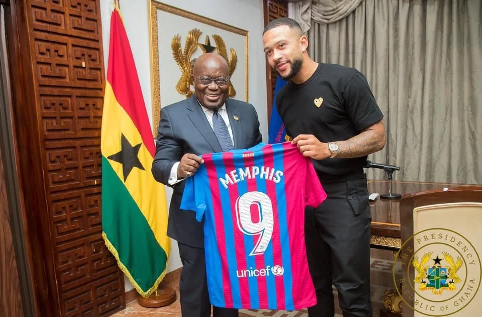 Netherlands and Barcelona star Memphis Depay paid a visit to Ghana’s President Nana Akufo-Addo at the Jubilee House on Thursday.