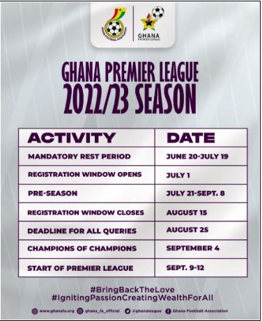 The Ghana Football Association (GFA) has released its schedule ahead of the start of the 2022/23 Ghana Premier League season.