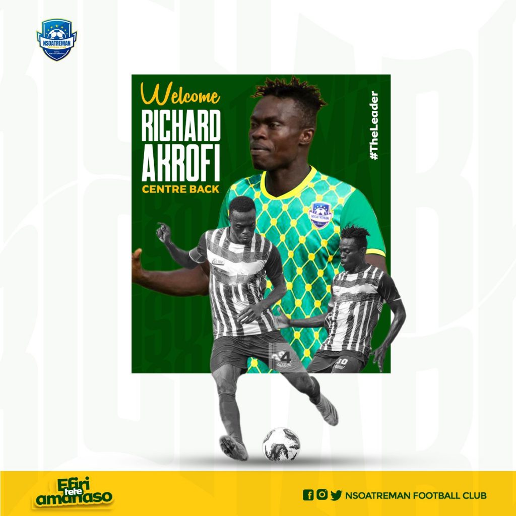 Newly Promoted Ghana Premier League outfit, Nsoatreman have completed the signing of experienced defender Richard Akrofi on a 2-year deal.