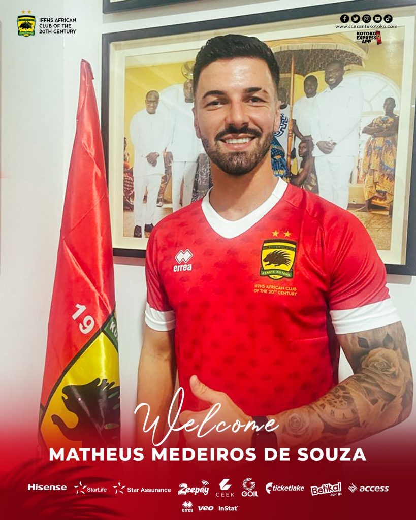 Matheus Medieros De Souza has joined Asante Kotoko for a six month deal with a plus one-year option to extend, the club has announced.