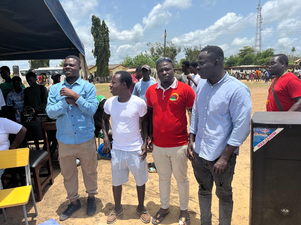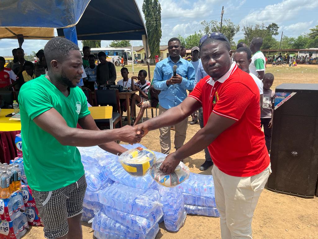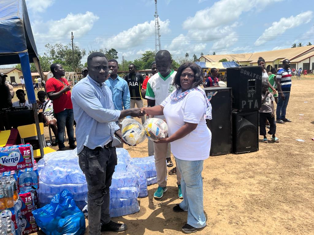 Association of Sports Broadcasters of Nzema ( ASBON) Ellembelle branch, Domestic Sports Ghana, Nzema Football Nkosoa together with Ellembelle Football Reform Team today donated assorted drinks and water, footballs and Volley balls to the Nzema Sports Federation for Secondary school games as their own means of supporting the Federation in the ongoing Inter school games.