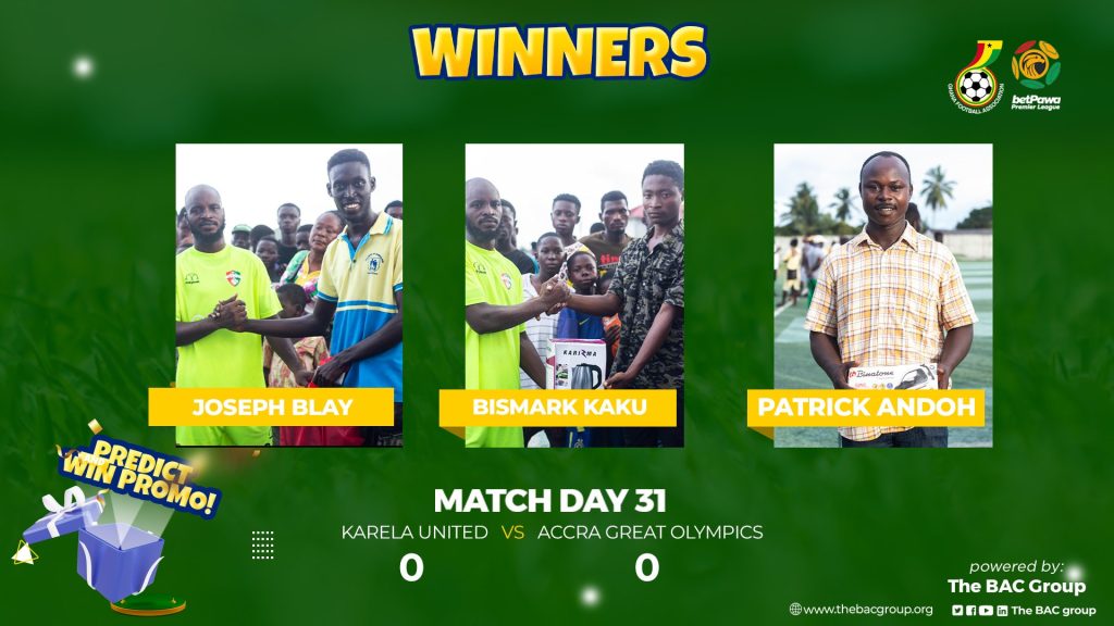 The betpawa premier league fan engagement by the Ghana Football Association, powered by The Business Africa Consulting Group allowed fans to predict the correct scoreline between Karela United and Great Olympics to win some amazing prizes.