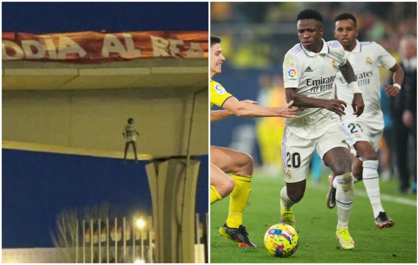 Spanish police has announced they had detained four people in connection with an incident in which a mannequin representing Brazilian soccer star Vinicius Jr was hung under a bridge ahead of the Madrid derby against Atletico in January. Spanish prosecutors opened a probe Monday into racist chants aimed at Real Madrid’s star forward Vinicius Junior during a match between Valencia and Real Madrid at the Mestalla as the football federation president admitted the country had a “problem” with racism. During the match, Vinicius stood in front of fans behind the goal and pointed to the apparent culprit and play was delayed for several minutes in the second half. Vinicius was sent off in added time at the end of the game for hitting Valencia player Hugo Duro during a brawl. Referee Ricardo de Burgos Bengoetxea spoke to stadium officials, who made an announcement calling for racist insults to stop before play resumed 10 minutes later. The referee wrote in his post-match report that a fan shouted “monkey, monkey” at the player. The police said: “Three of the detainees are active members of a radical Madrid club fan group. The mannequin appeared next to a 16-metre banner on the bridge which said ‘Madrid hates Real’ near Real Madrid’s Valdebebas training ground hours before a derby match. “The inquiries carried out up to now by investigators through DNA evidence, evidence from witnesses and other intelligence material led to the identification of four males as the alleged authors. Officers discovered three belonged to an ultras organisation and had already been identified during previous high-risk matches by police operatives seeking to prevent sporting violence. They were arrested in an operation carried out today which was coordinated with Madrid’s Court of Instruction Number 38 and a prosecution cyber-crimes section.”
