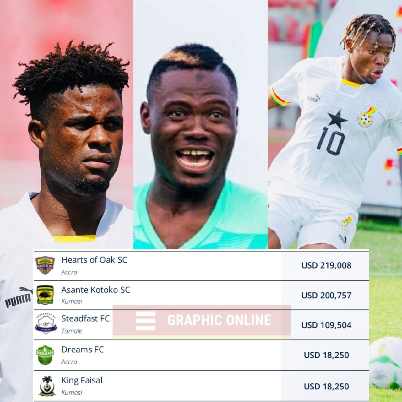 Asante Kotoko, Hearts of Oak, King Faisal, Dreams Football Club, and Steadfast Football Club are the fortunate recipients of this program. Among them, Hearts of Oak received the highest amount of $219,008.70, while Kotoko was paid $200,757.97. Steadfast received $109,504.72, whereas Dreams and King Faisal each received $18,250.72.