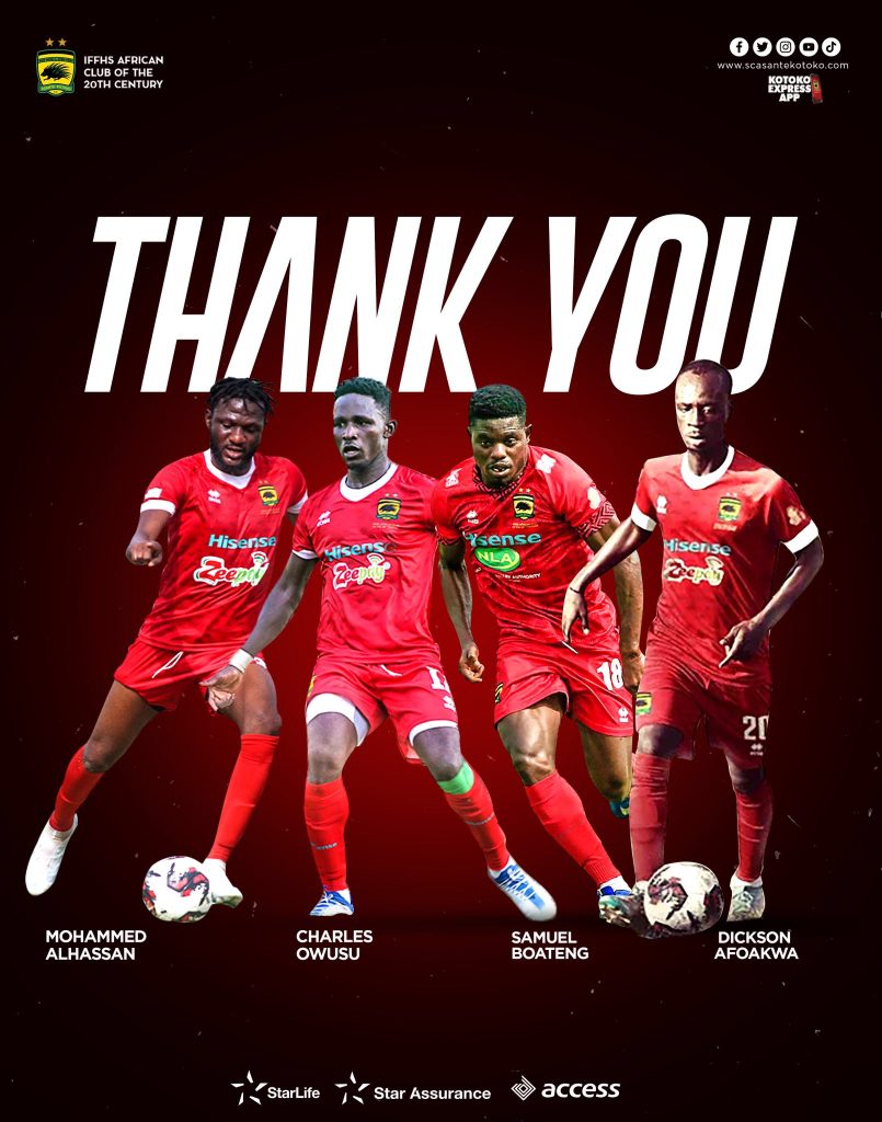 Asante Kotoko has officially revealed the departure of four players as they prepare for the upcoming 2023/24 season.