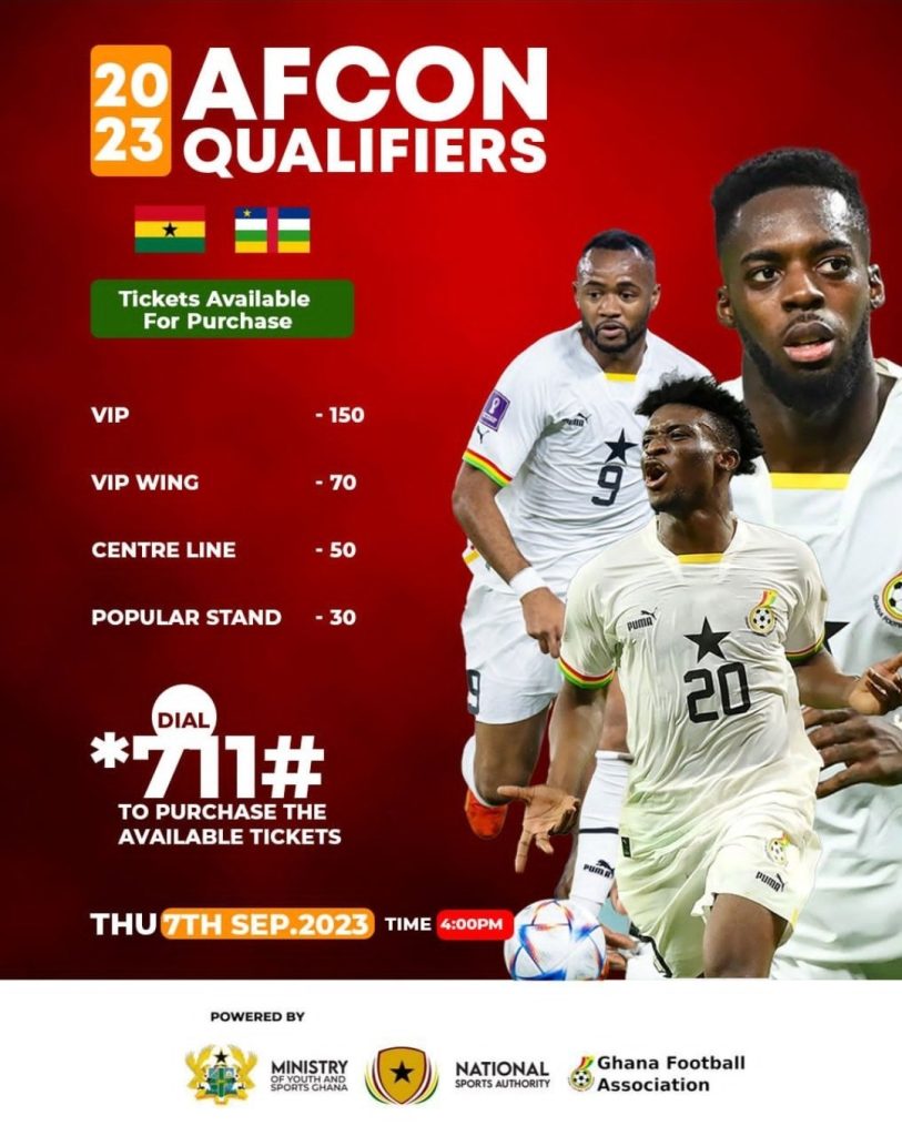 Ministry of Youth and Sports has released tickets rate for the Black Stars’ AFCON qualifier against Central African Republic.