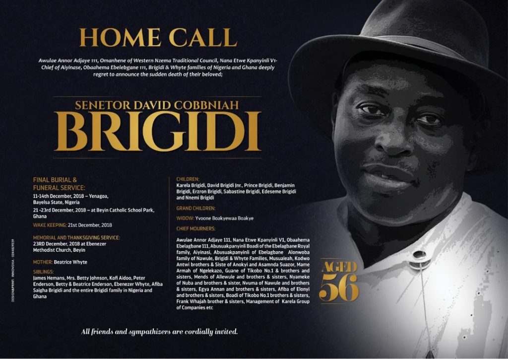 Senator Brigidi was one of the most enigmatic and impactful leaders the Nigerian based Niger Delta ever produced. He was Teacher, Inspirational, Orator, Lawyer, a born Leader of Men, astute Mentor, Politician, Diplomat, Sports Promoter, and successful Businessman.