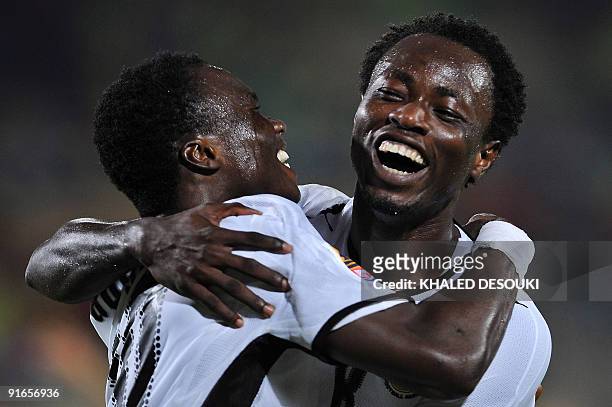Ghana's Dominic Adiyiah (L) celebrates with his teammate Ransford Osei after scoring a goal against South Korea during their FIFA Under-20 World Cup quarter-final football match in the Egyptian city of Suez, 140 kms northeast of Cairo, on October 9, 2009. Ghana won 3-2. AFP PHOTO/KHALED DESOUKI (Photo credit should read KHALED DESOUKI/AFP via Getty Images)