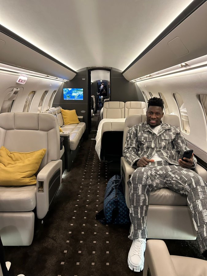Whilst fans moved out of Old Trafford after the game, Onana jetted off to begin the 4,800-mile journey from Manchester on a private jet to the Ivory Coast.