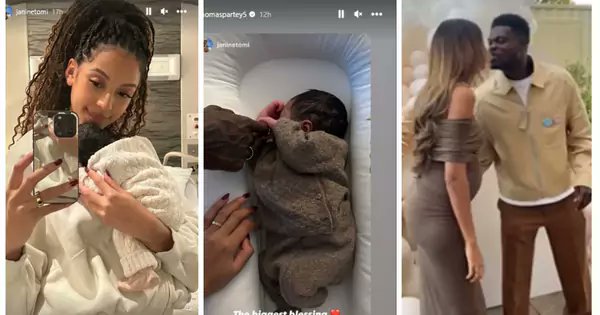 Janine posted a partial photo of herself and Partey holding the hands of the baby, along with the caption “the biggest blessing.”