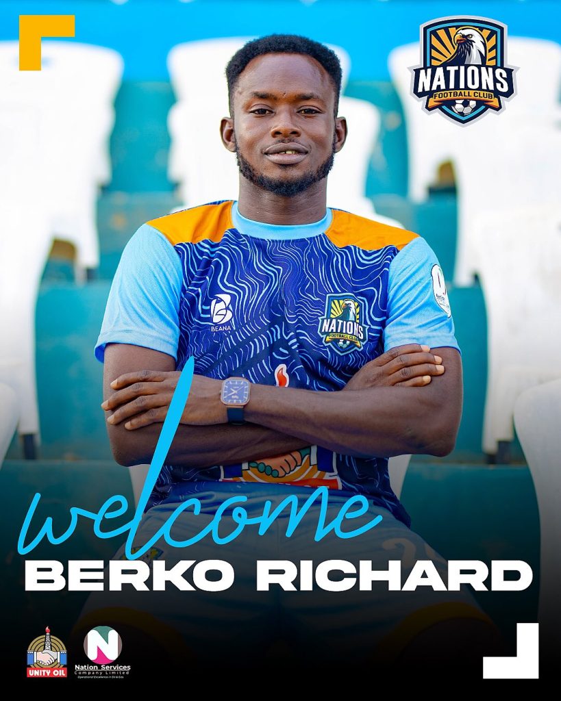 Ghana Premier League side, Nations Football Club has officially confirmed the signing of former Karela United forward Richard Berko.